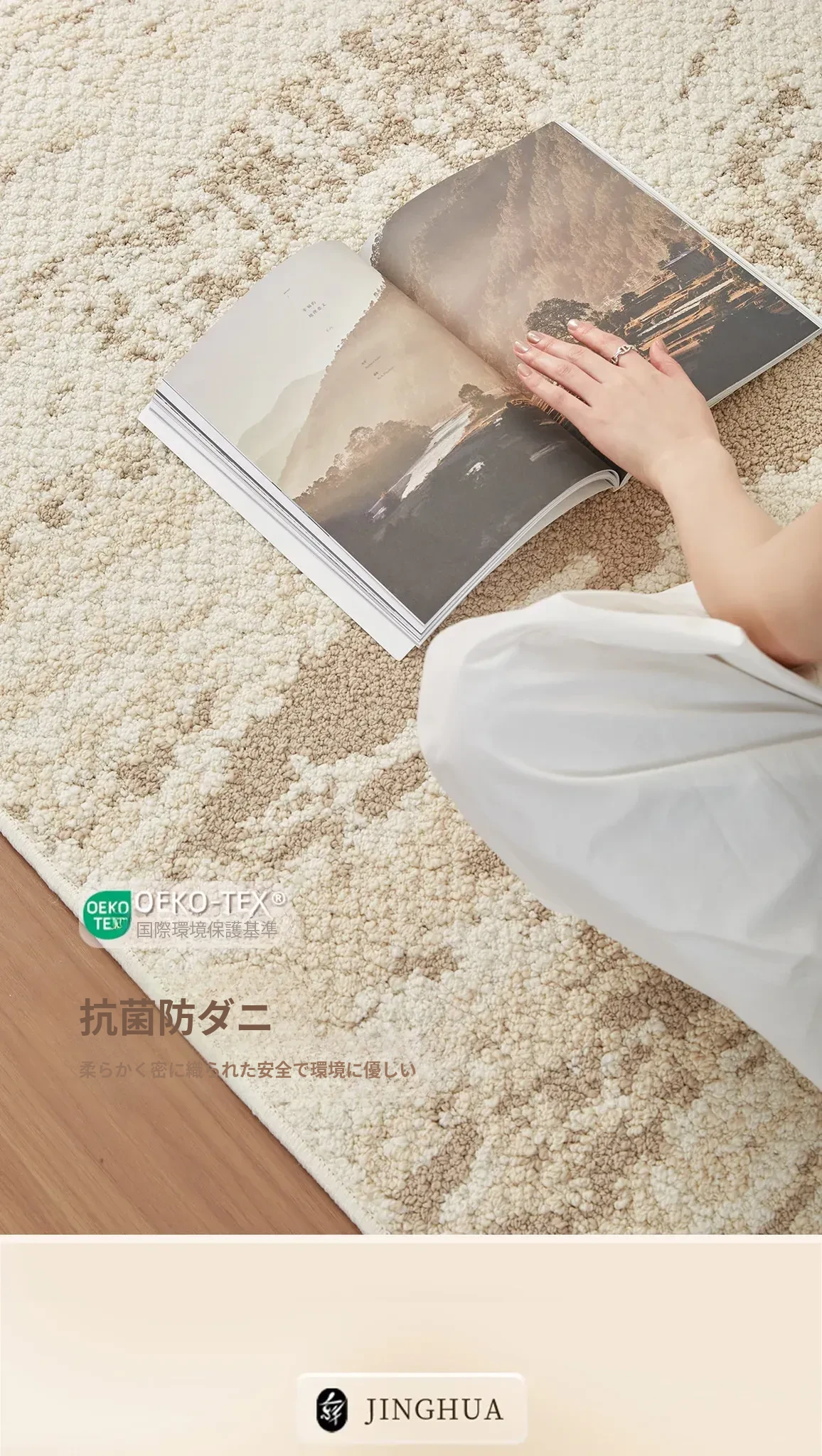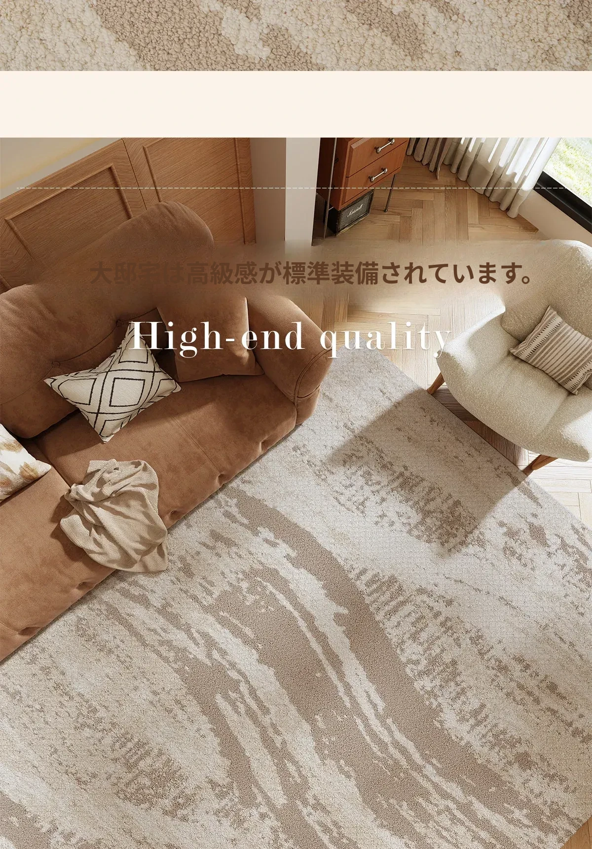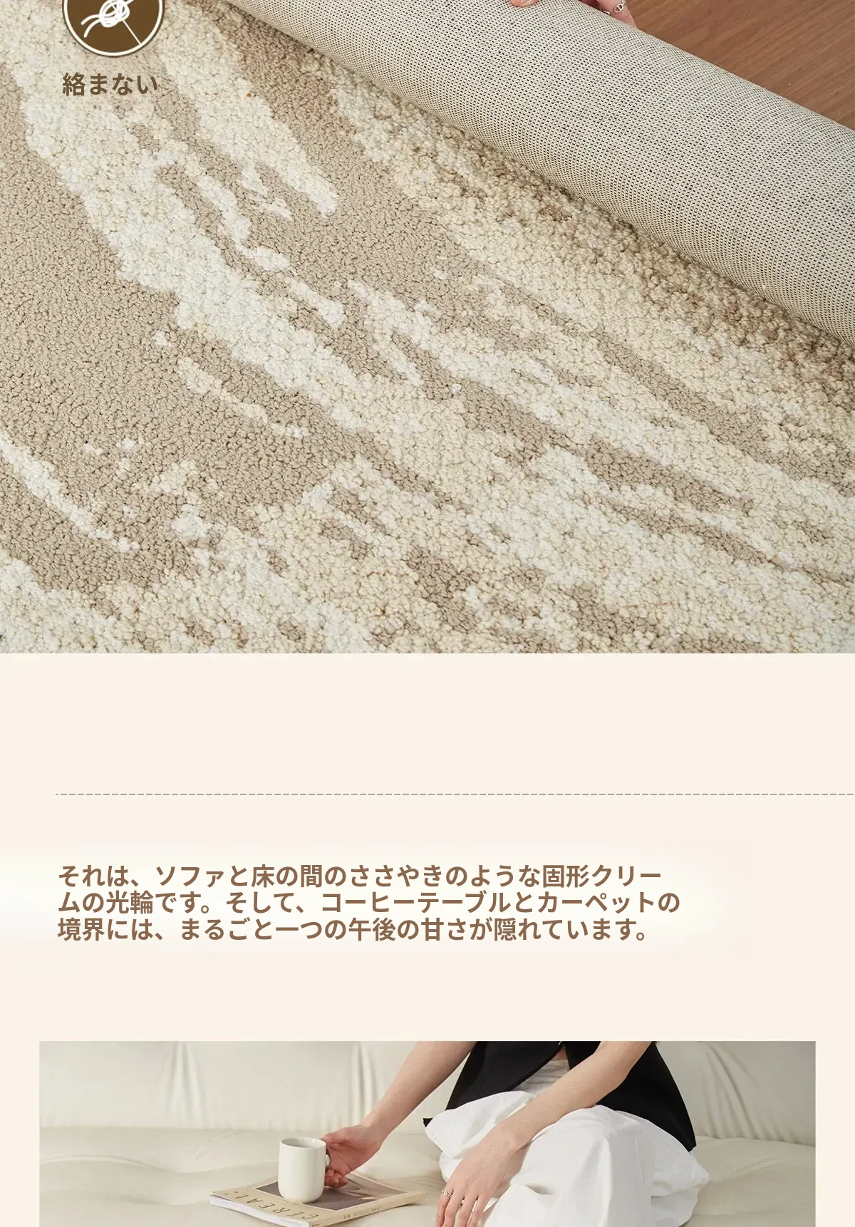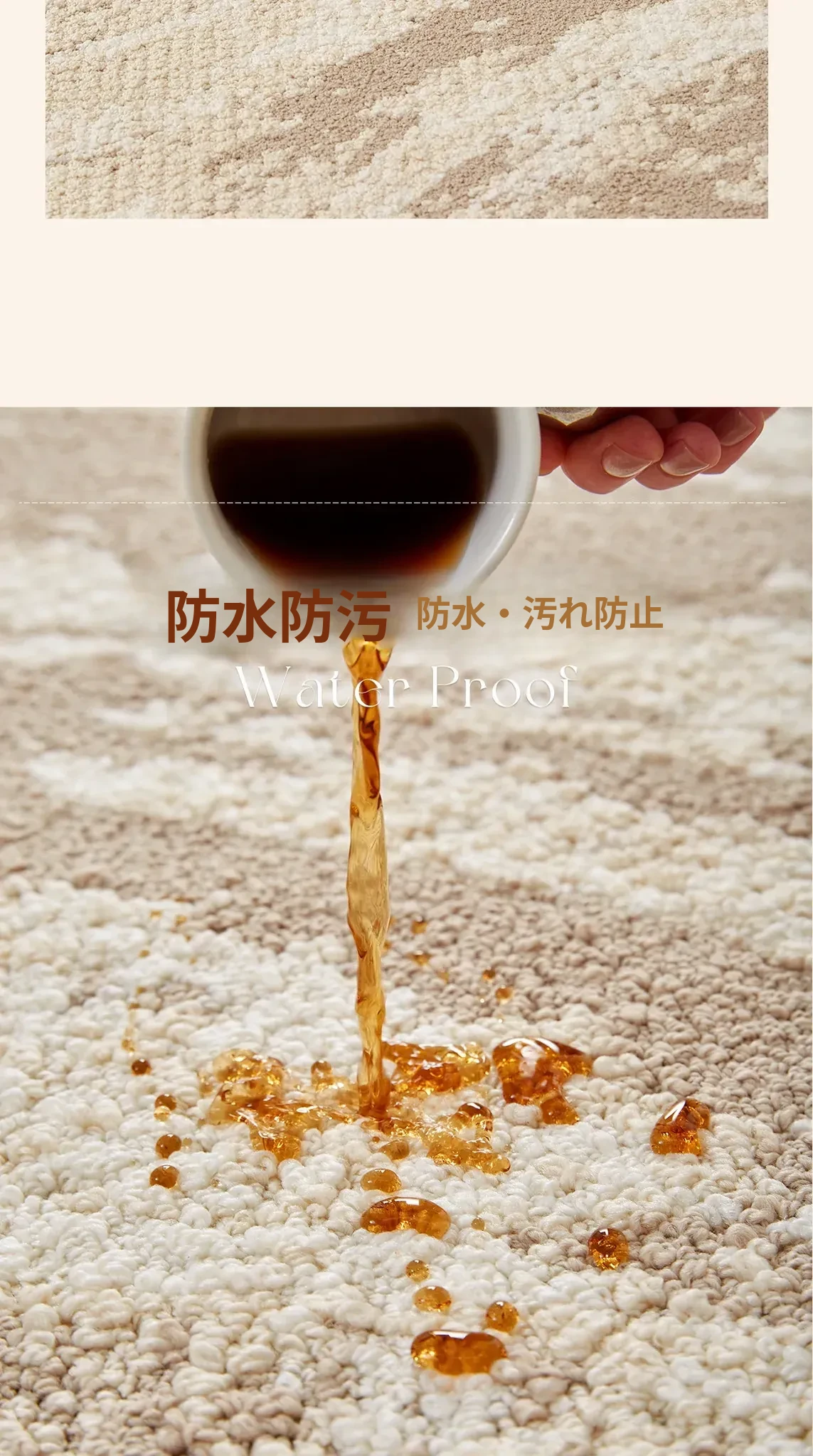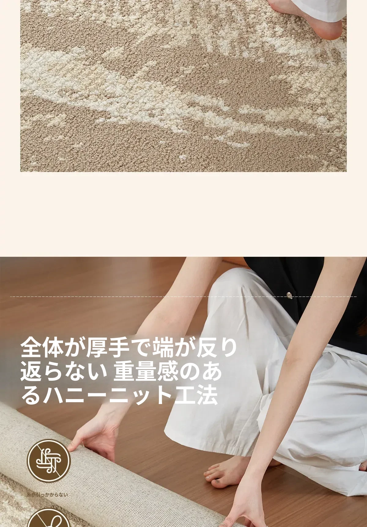 京華スタイルのリビングルームカーペット|アンティーククリーム風のラグで、軽やかな高級感を演出!ソファやテーブルにもぴったり。防水・防汚機能付きで、家庭用にも最適!