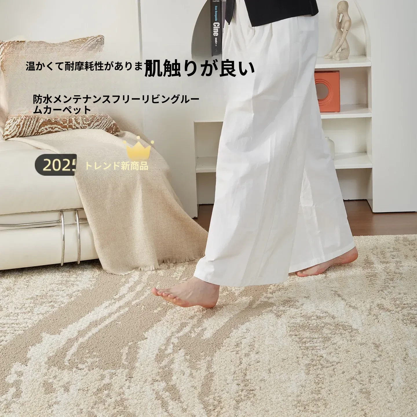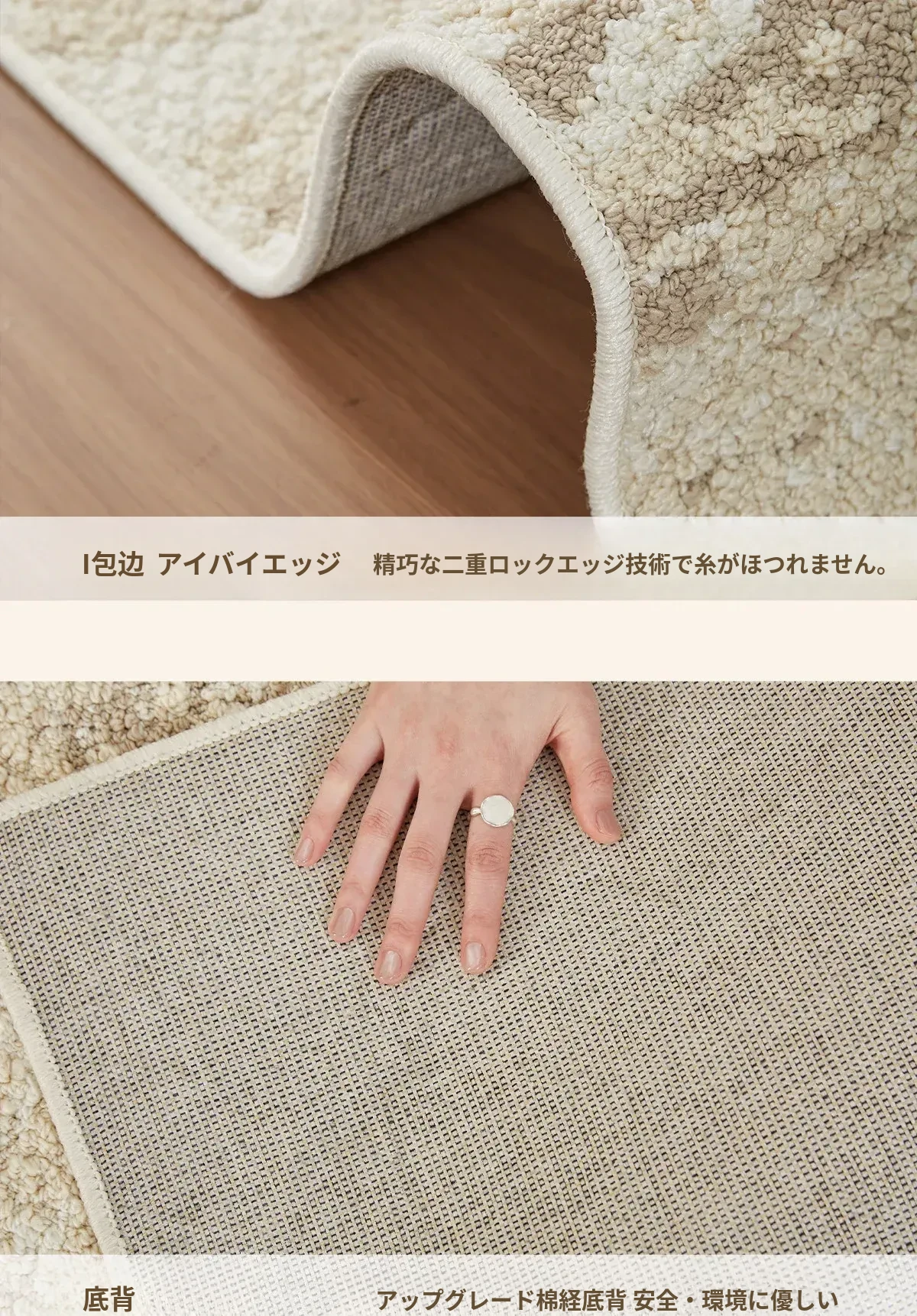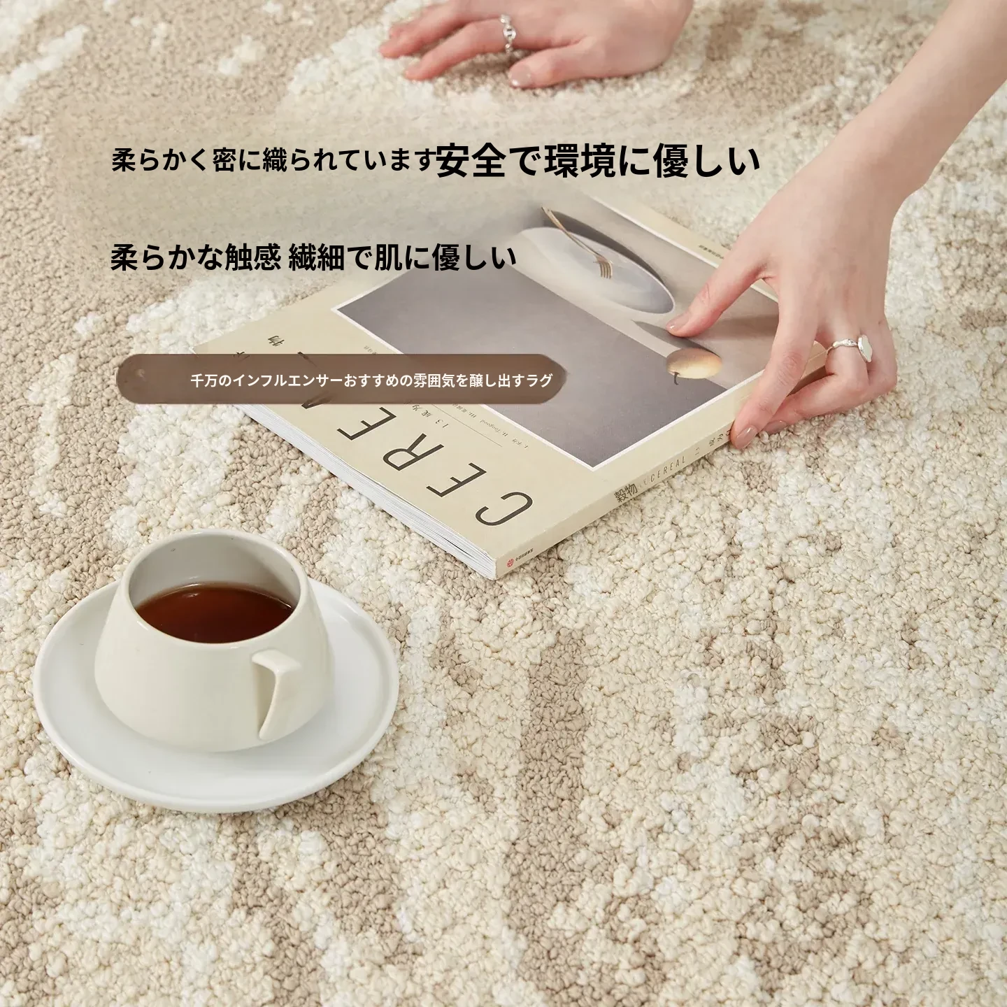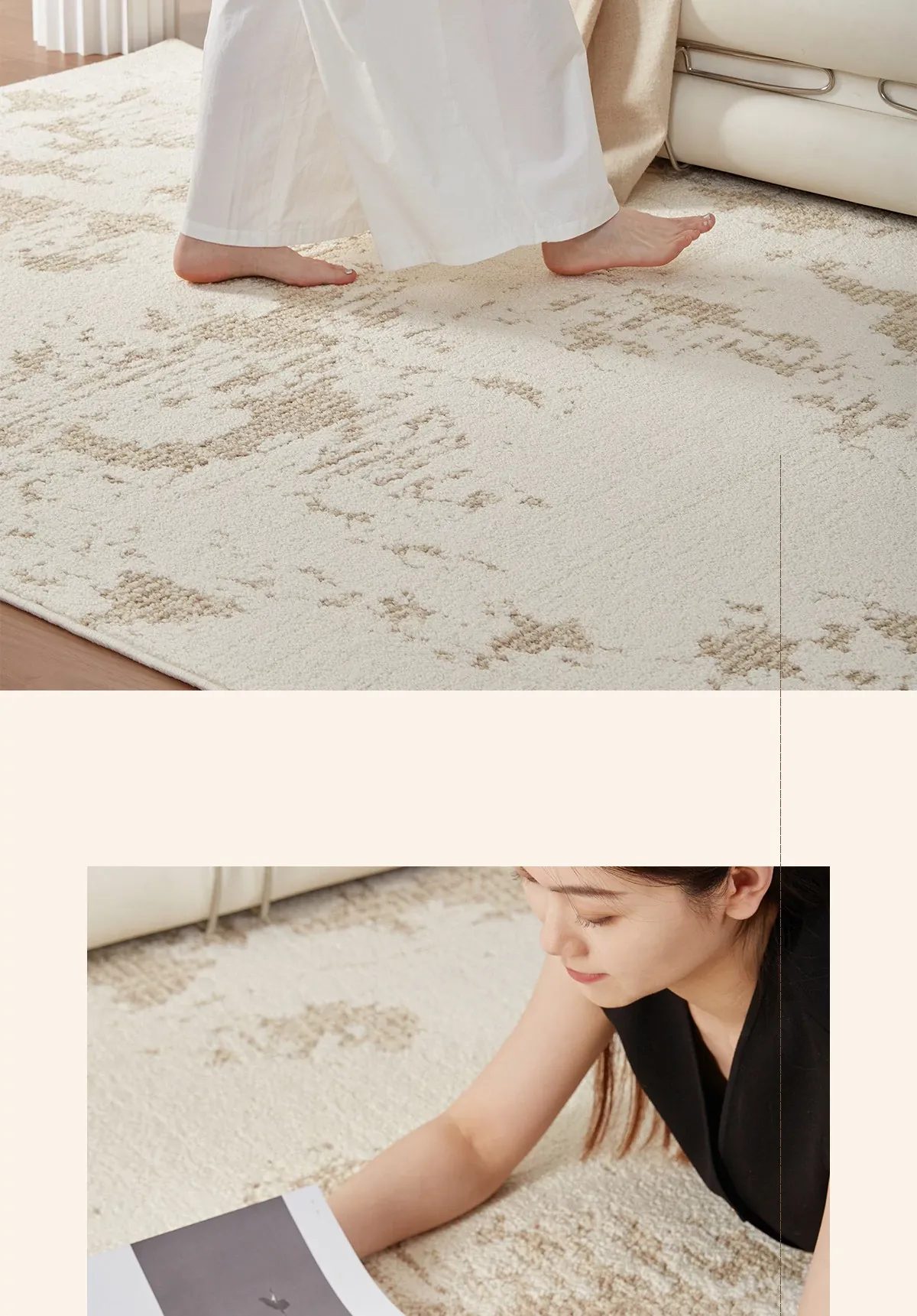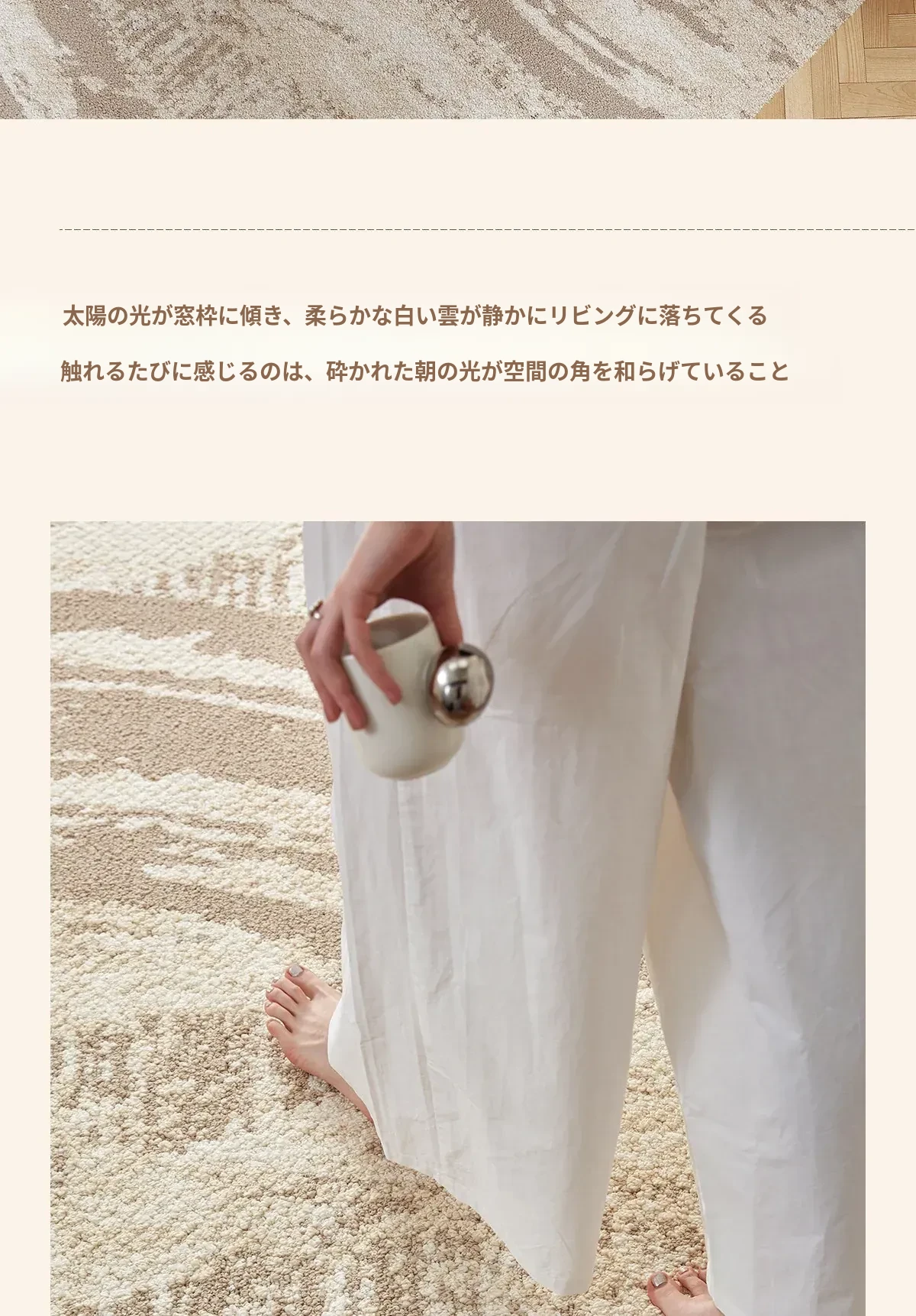 京華スタイルのリビングルームカーペット|アンティーククリーム風のラグで、軽やかな高級感を演出!ソファやテーブルにもぴったり。防水・防汚機能付きで、家庭用にも最適!