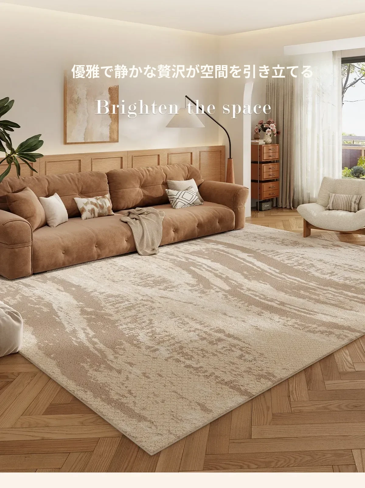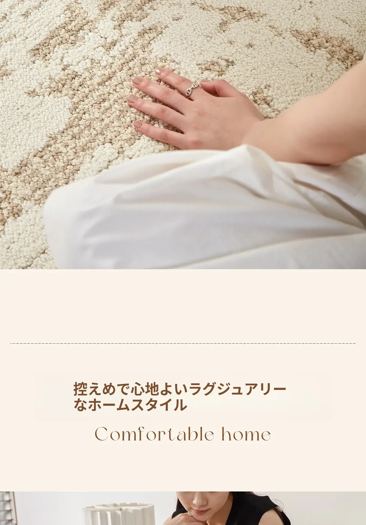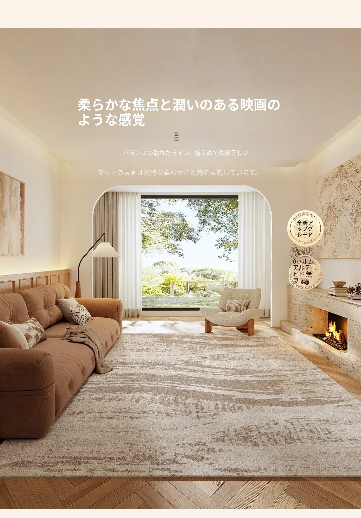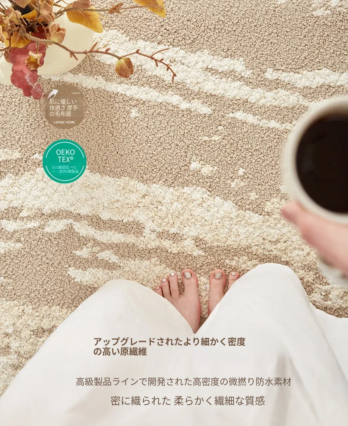 京華スタイルのリビングルームカーペット|アンティーククリーム風のラグで、軽やかな高級感を演出!ソファやテーブルにもぴったり。防水・防汚機能付きで、家庭用にも最適!