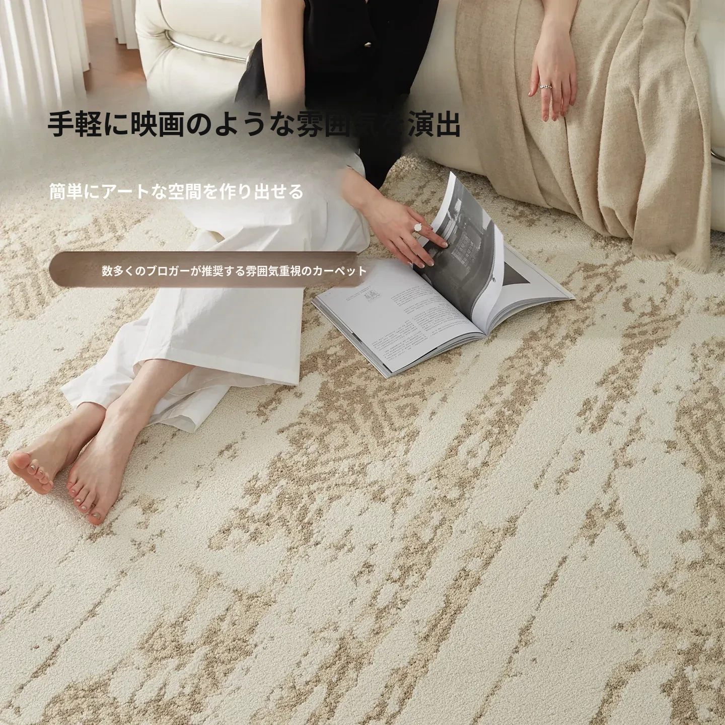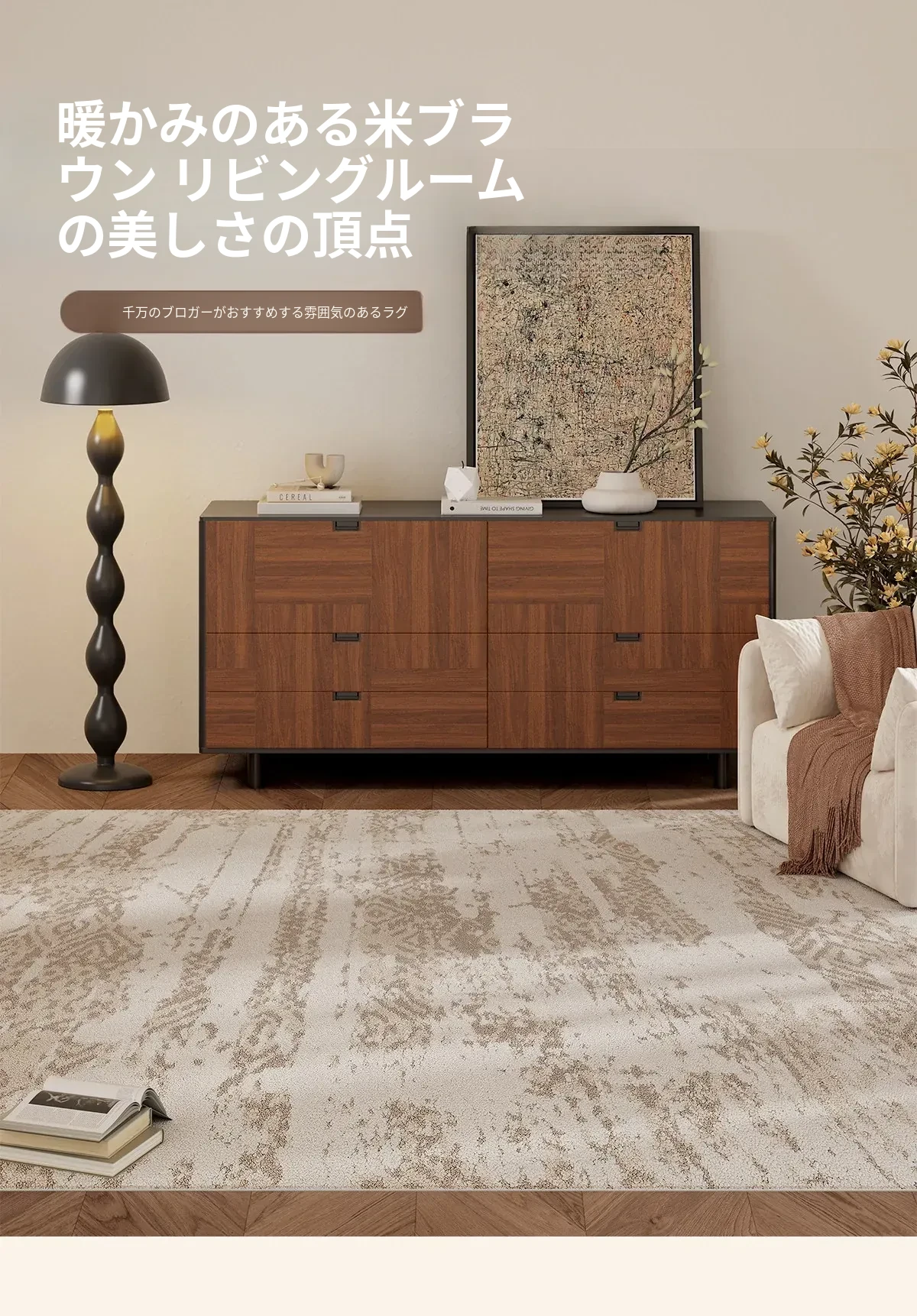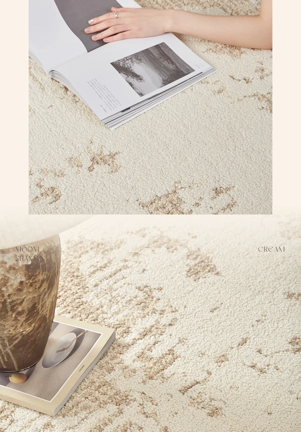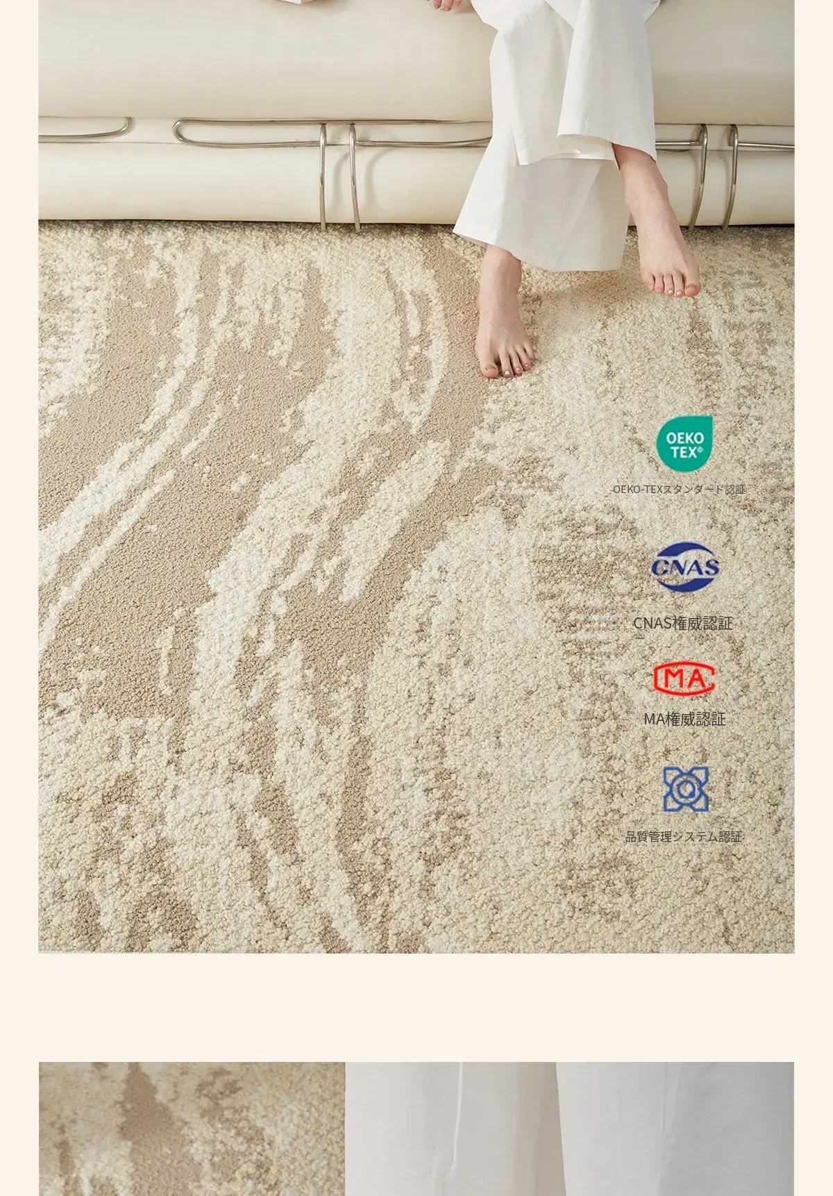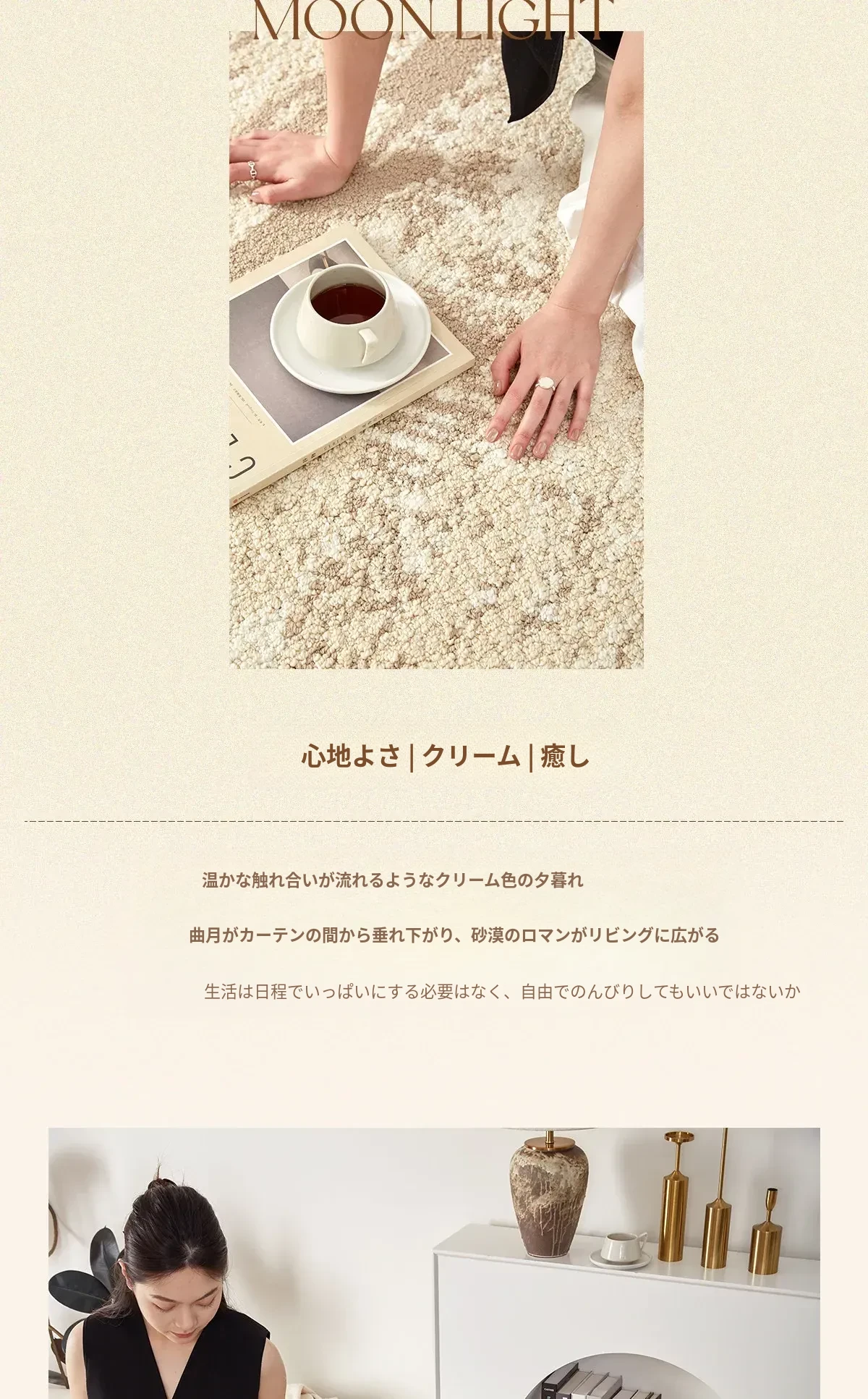 京華スタイルのリビングルームカーペット|アンティーククリーム風のラグで、軽やかな高級感を演出!ソファやテーブルにもぴったり。防水・防汚機能付きで、家庭用にも最適!