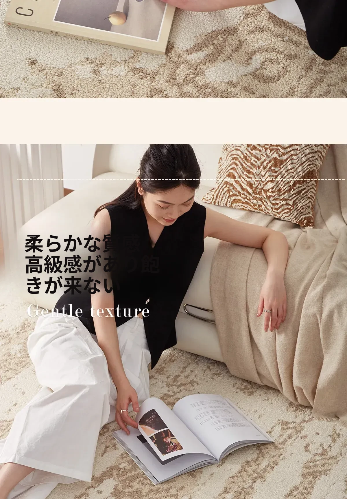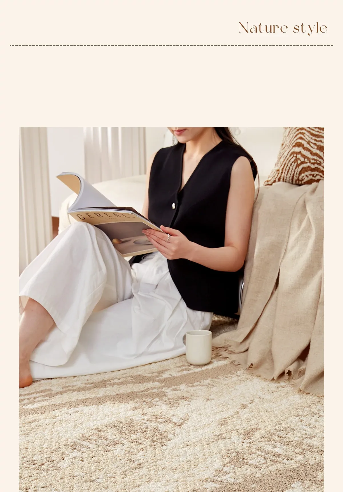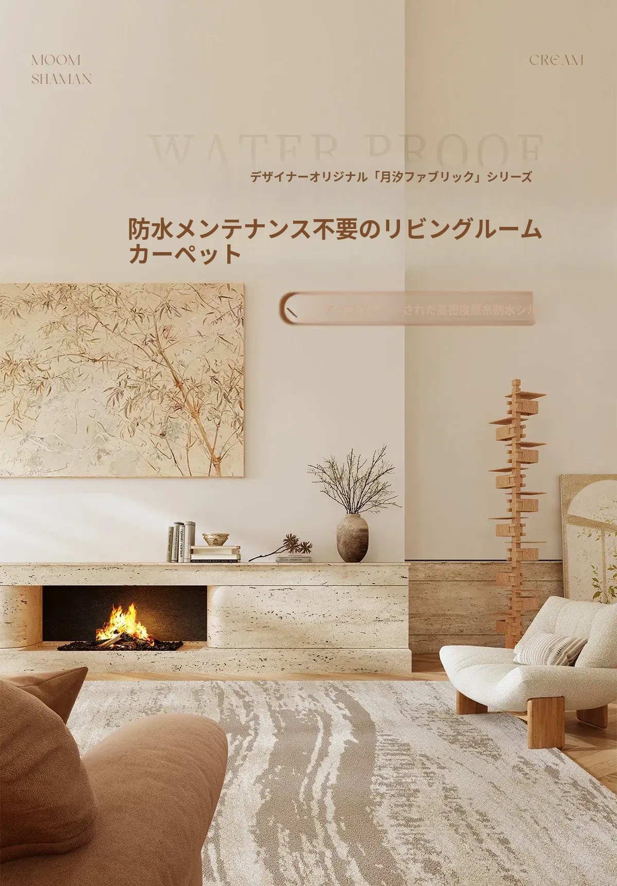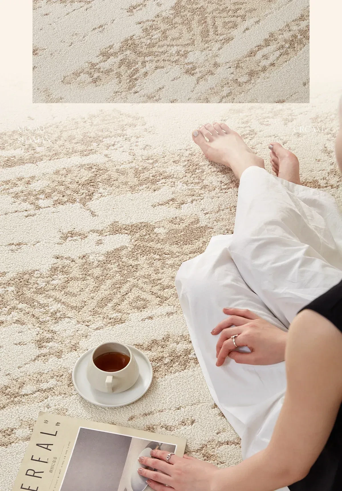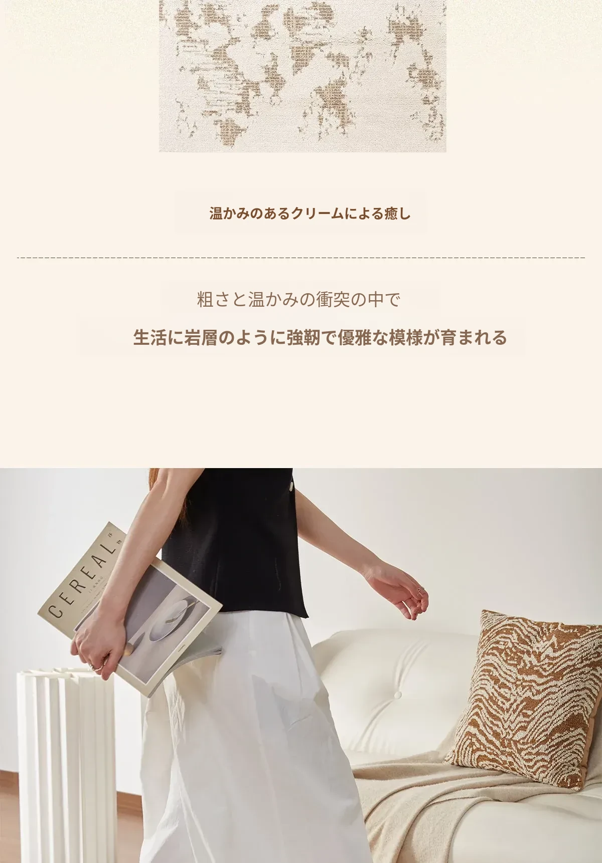 京華スタイルのリビングルームカーペット|アンティーククリーム風のラグで、軽やかな高級感を演出!ソファやテーブルにもぴったり。防水・防汚機能付きで、家庭用にも最適!