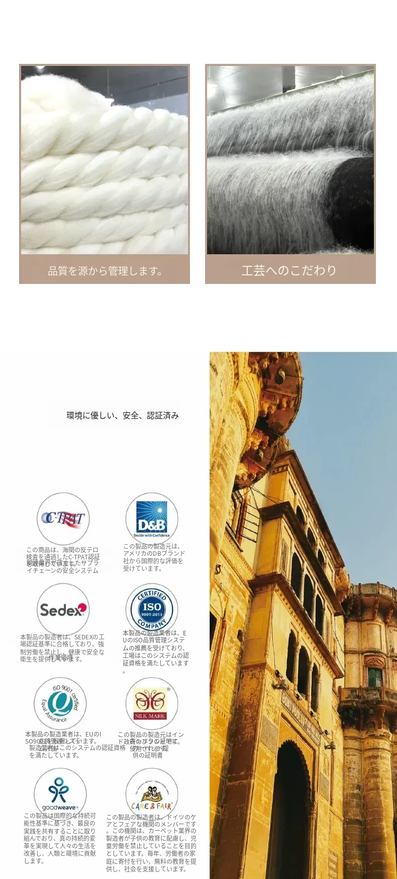 【インド直輸入 手作りウール】高級リビングラグ 手編みの耐汚れ・厚手ベッドサイドカーペット