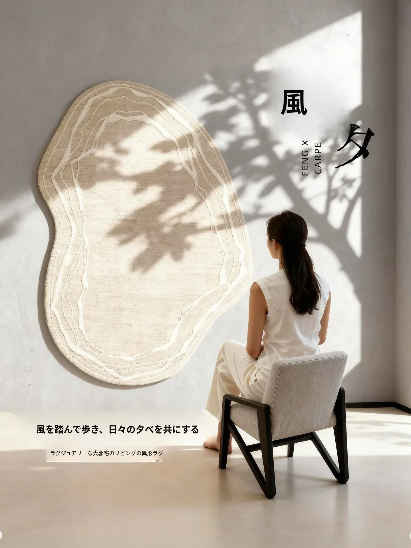 リビングルームにぴったり!2026年新作の侘寂風デザインの高級感あふれるラグ。お手入れ簡単で、洗浄不要。防水・防汚機能付きで、ソファやテーブルの下に最適です。