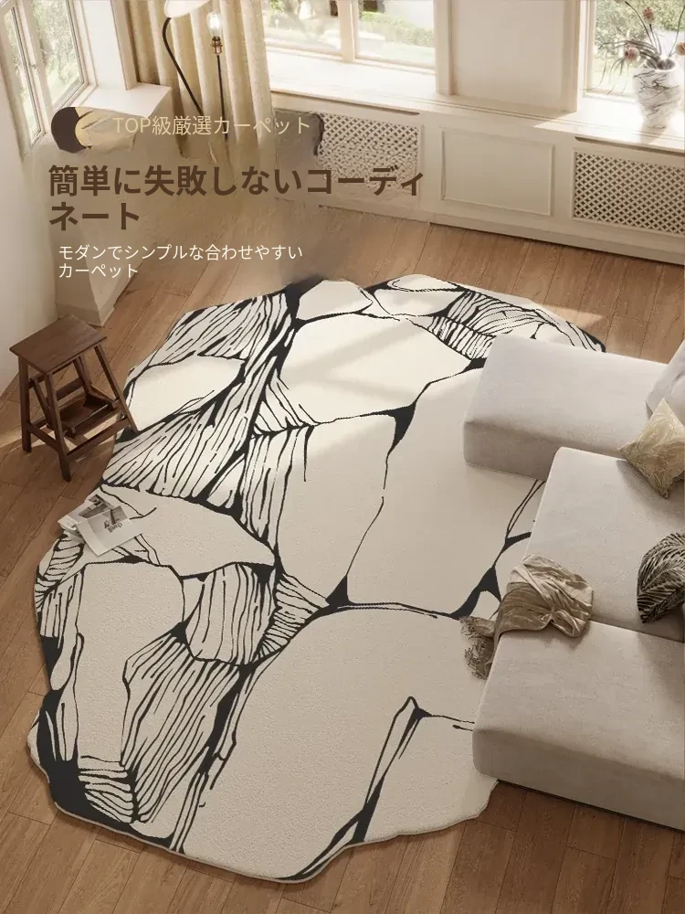 リビングルーム用アートデザインの異形カーペット - 高級感あふれるソフトで肌触りの良い素材、ティーセットやソファにぴったり!天津の特製ラグで、あなたの空間を華やかに演出します。